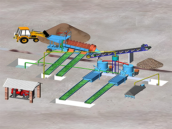 Alluvial deposits or Alluvial mining can be fed to a plant with Spirals chute, jigger, trommel , centrifugal concentrator and shaker table etc. You will get a gold heavy concentrate.